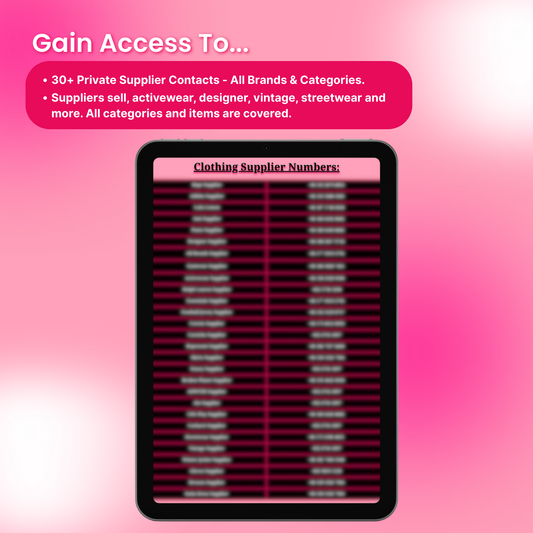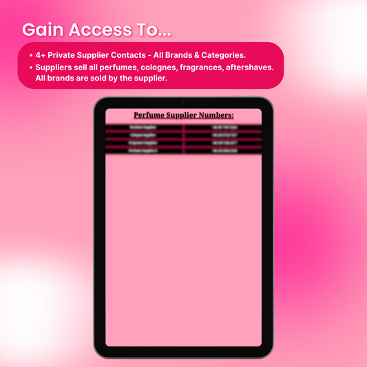 You’ll get 50+ private supplier contacts for clothing, shoes, perfumes, accessories and more. Each one is direct-to-source with no middlemen.